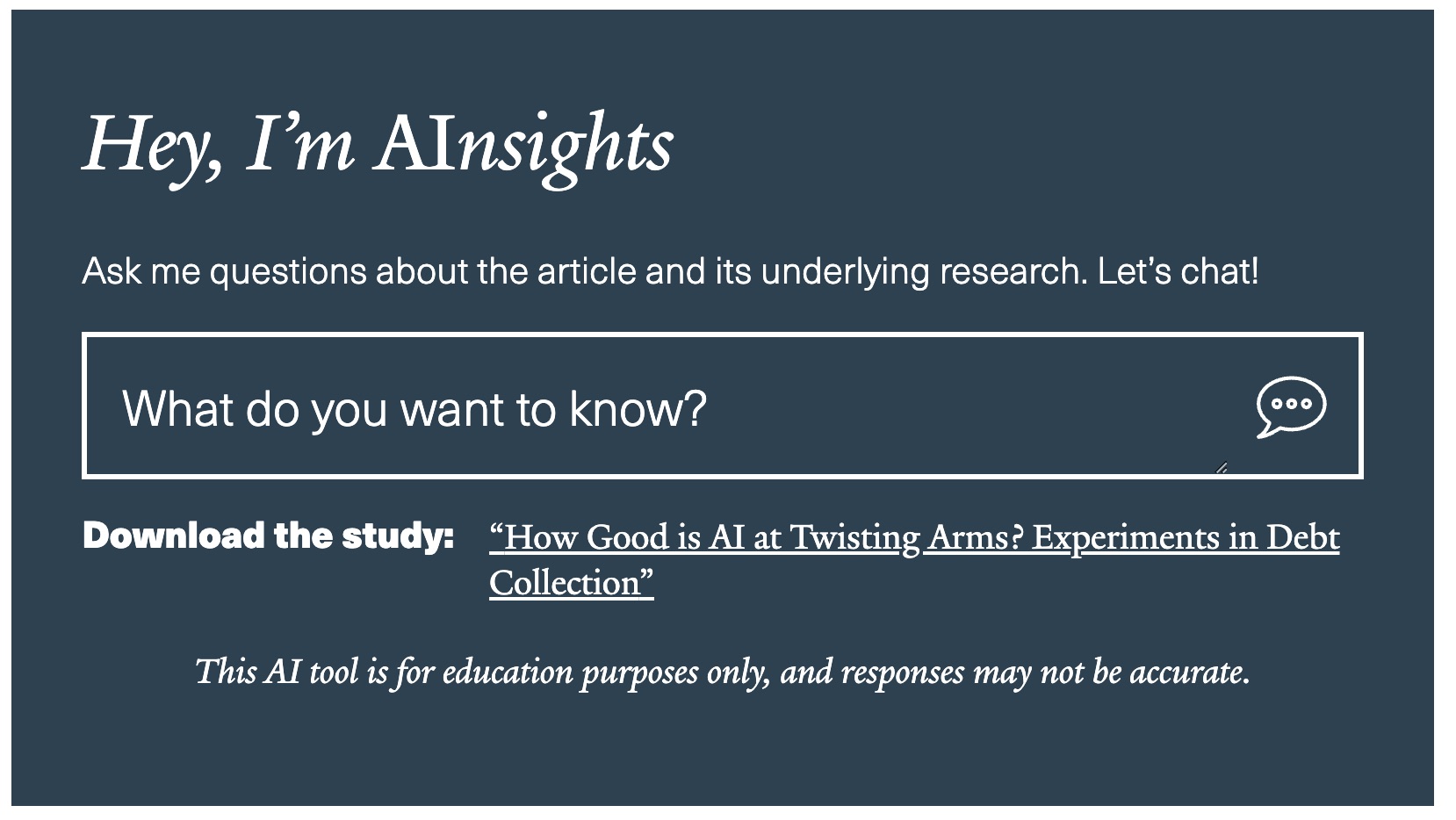James Choi, “How Good is AI at Twisting Arms? Experiments in Debt Collection”